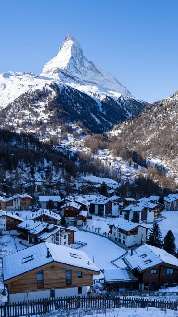 Zermatt to jedno z najbardziej ikonicznych miasteczek w całej Szwajcarii – położone u stóp legendarnego Matterhornu, wolne od samochodów i pełne tradycyjnego górskiego klimatu. Spacerując jego wąskimi uliczkami, czujesz się jak w alpejskiej bajce – wszędzie drewniane chaty, górskie panoramy i zapach lasu.