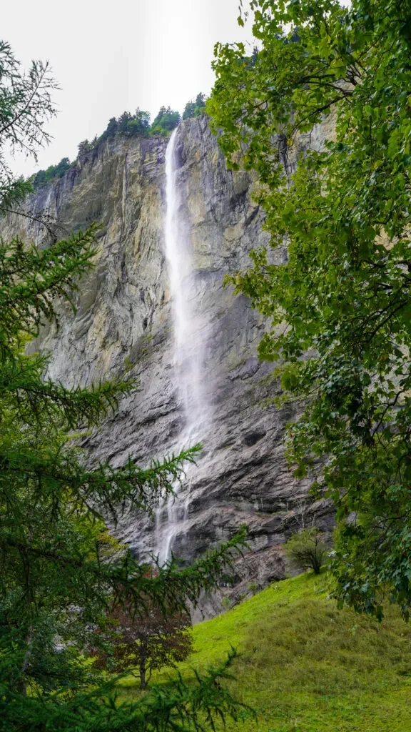 Tutaj zostawiam pinezkę 📍46°35’40.8″N 7°54’29.9″E do ciekawego punktu widokowego i znanej „insta miejscówki” z wodospadnem Stubbachfall w tle.