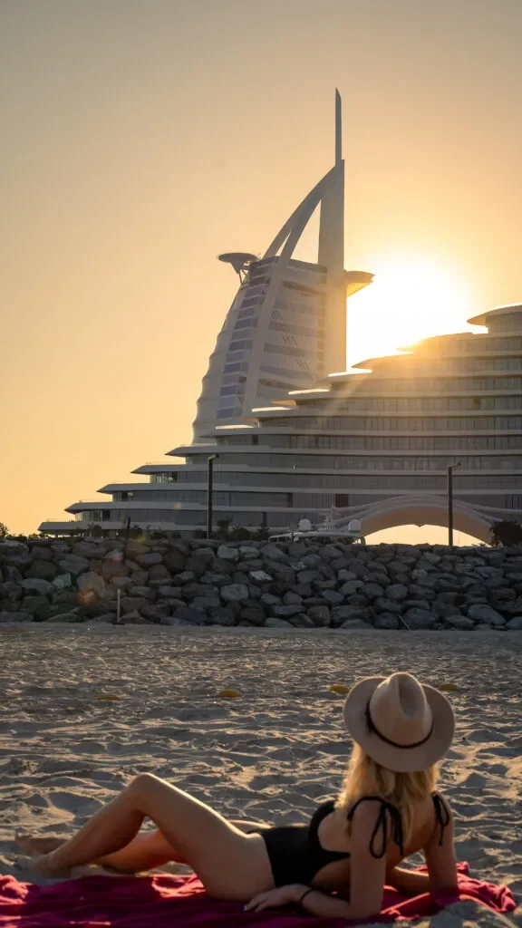 Wybudowanie sztucznej palmy w Dubaju znacznie powiększyło wybrzeże i teren do zagospodarowania. Niestety, nie dla przeciętnego Kowalskiego. Większość plaż jest prywatna i zarezerwowania dla poszczególnych hoteli. Najbardziej charakterystyczny z nich to Burj Al Arab. Jest to jedyny 7* hotel na świecie. Jumeirah Beach to chyba jedyna publiczna plaża w okolicy dubajskiego żagla. Natomiast, do fot przy zachodzie słońca z hotelem w tle najlepsza będzie sekcja tej plaży o nazwie Umm Suqeim.