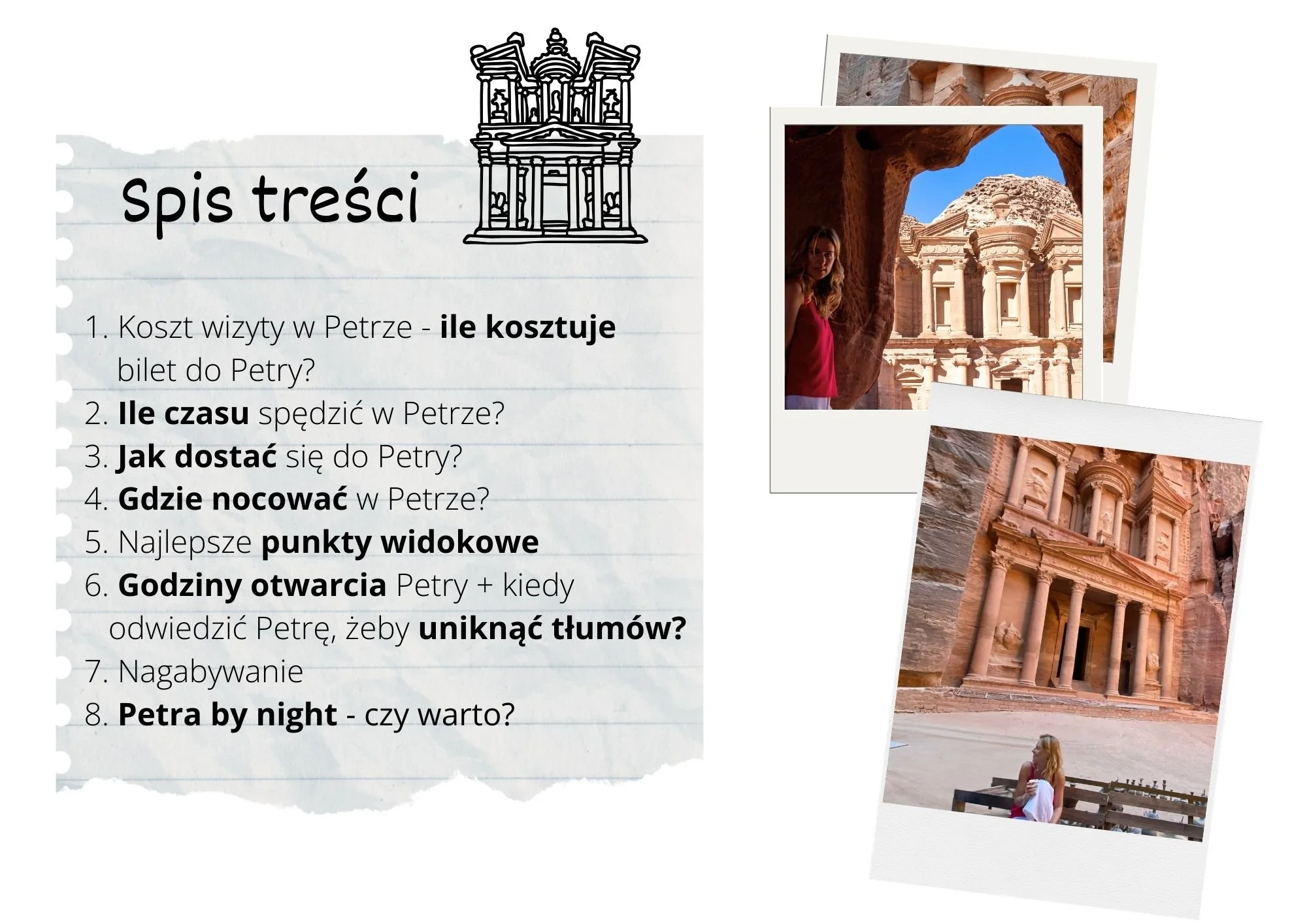 ✔ Woda i przekąski: Petra to spacery na kilka godzin — weź ze sobą wodę i lekkie przekąski, bo ceny na miejscu są wysokie.