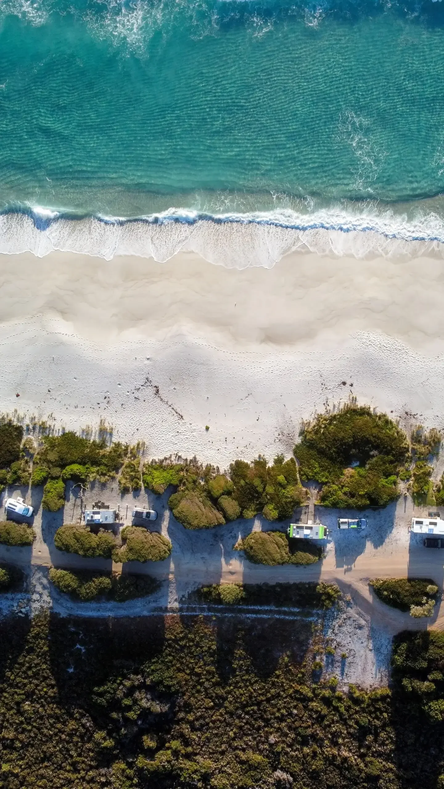 Na camping przyjechaliśmy późnym wieczorem. Jak to zwykle bywa podczas podróży kamperem, obiecujemy sobie, że tym razem dotrzemy wcześniej, ale dni w trasie są zawsze pełne atrakcji i zwiedzania. Trafiliśmy na tę miejscówkę przypadkiem, szukając czegoś innego w internecie. Zdjęcie kampera z turkusową wodą w tle od razu przykuło moją uwagę. Kontrast między oceanem a zielenią buszu był zachwycający.