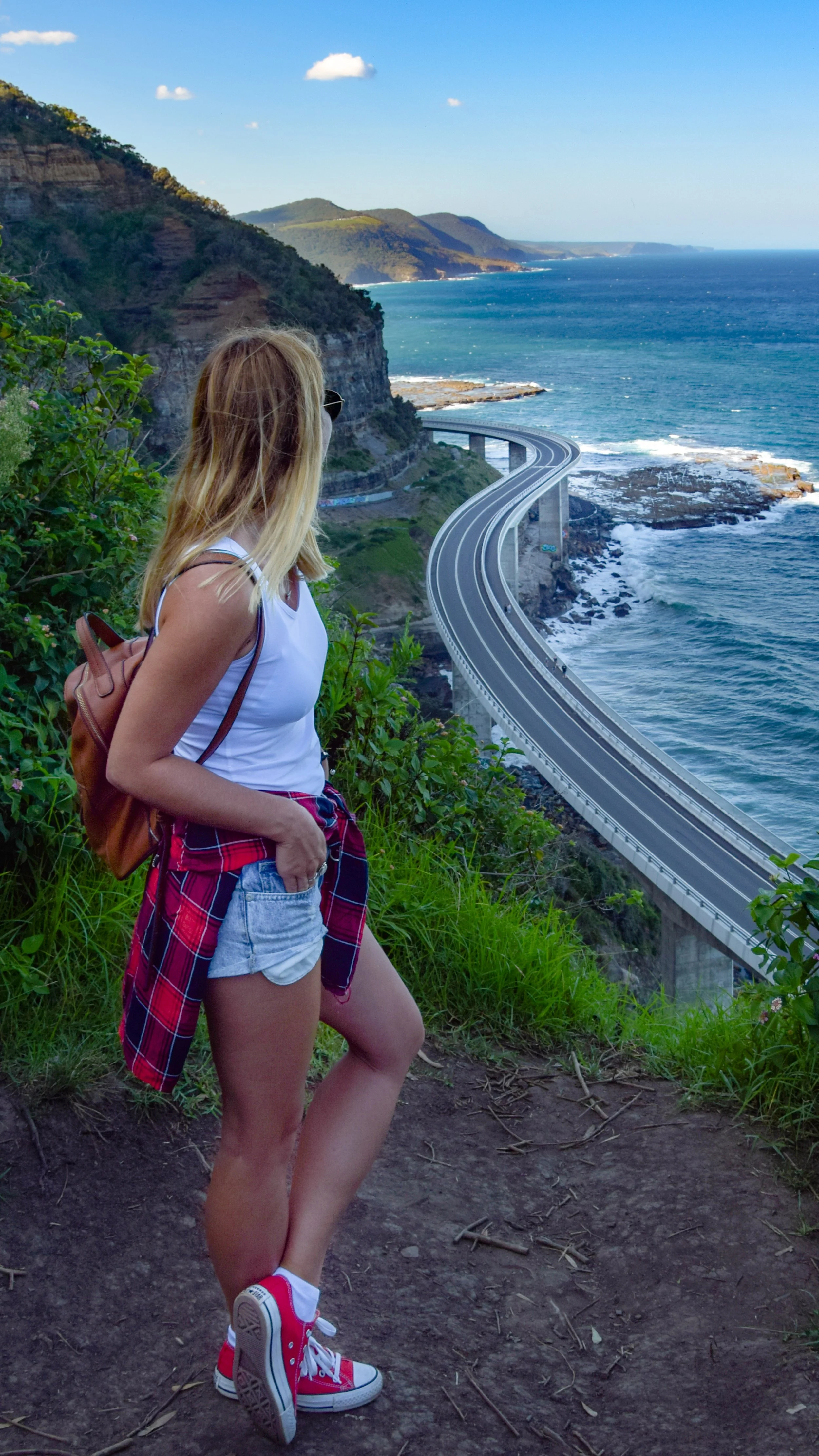 Uprzedzam, to jest nie legalnie zatwierdzony punkt widokowy do podziwiania Sea Cliff Bridge i jest nie monitorowany i tym samym nie zarządzany przez żadne służby. Wymaga też pewnego stopnia aktywności, ponieważ konieczne będzie pokonanie nieco stromej trasy przez busz na górę klifów. Wejście znajduje się zaraz przy tabliczce z nazwą miejsca, wygląda nie pozornie, ale wydeptana trawa przy wejściu zdecydowanie ułatwia lokalizację.
