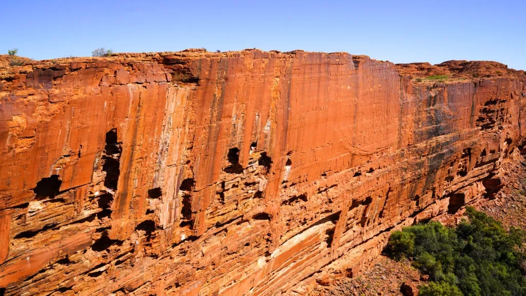 Położony ok. 300 km od Alice Springs, w obrębie Watarrka National Park. Znajdziecie tutaj wysokie skały, przeróżne formacje skalne oraz mniejsze baseny skalne. Na terenie parku do dyspozycji odwiedzających są 4 szlaki. Najbardziej popularnym jest Rim Walk o długość ok. 6 km (ok. 3-4 h marszu). Z uwagi na trasę przebiegającą praktycznie po samych skałach bez żadnego zadaszenia, wejście do parku jest kontrolowane w miesiącach letnich, gdy temperatura przekracza dopuszczalną normę. Przy prognozowanej temperaturze przekraczającej 36 stopni wejście do parku zamykane jest o 9 rano. Dodatkowo, aby w ogóle rozpocząć trasę Rim Walk należy pokonać ok. 1000 wyżłobionych w skale schodów z ostrym podejściem. Początkowy wysiłek jest szybko wynagrodzony niesamowitymi widokami, ale polecam zdecydowanie wybrać się tam wcześnie rano, aby spróbować uniknąć upałów. Krótszy szlak, South Wall Walk, trwa ok. 2 h (4.8 km) i obejmuje ostatnią sekcję trasy Rim Walk.