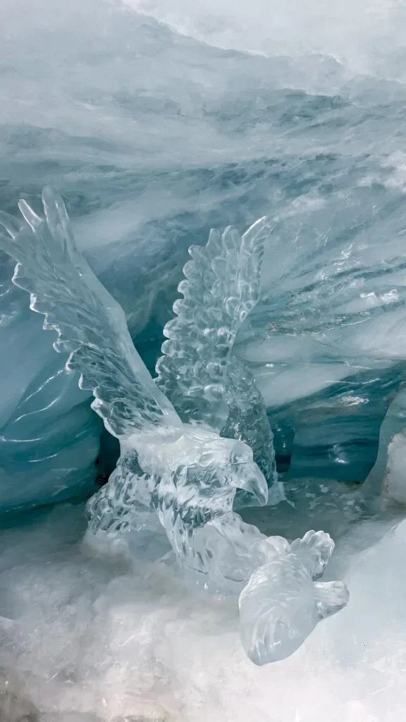 Podziemny świat rzeźb wyrzeźbionych w lodzie. Korytarze wykute wewnątrz lodowca tworzą niesamowity klimat, a lodowe figury i tunele robią ogromne wrażenie, zwłaszcza na dzieciach. Dodatkową frajdą jest możliwość ślizgania się po lodowych podłogach – dzieci (i dorośli!) mają z tego mnóstwo zabawy. Można też zobaczyć zakutego w lodzie wiewióra z filmu Epoka Lodowcowa, który z uroczą miną próbuje dosięgnąć swojego żołędzia – to jedna z ulubionych atrakcji odwiedzających. Korytarze wykute wewnątrz lodowca tworzą niesamowity klimat, a lodowe figury i tunele robią ogromne wrażenie, zwłaszcza na dzieciach.