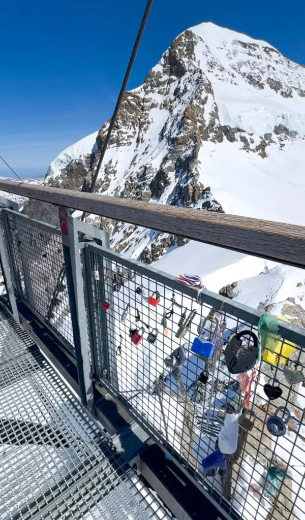 Platforma z panoramicznym widokiem na Alpy, w tym na największy lodowiec w Alpach – Aletschgletscher. Taras jest dwupoziomowy, a widok z jego górnej części dosłownie zapiera dech w piersiach. Bardzo mocno tam wieje, więc koniecznie zabierz czapkę i osłonę na szyję. Co ciekawe, mimo ogromnej wysokości, często można tam zobaczyć ptaki szybujące tuż obok platformy, co dodaje magii temu miejscu. W pogodny dzień widać aż po granice Francji i Włoch.