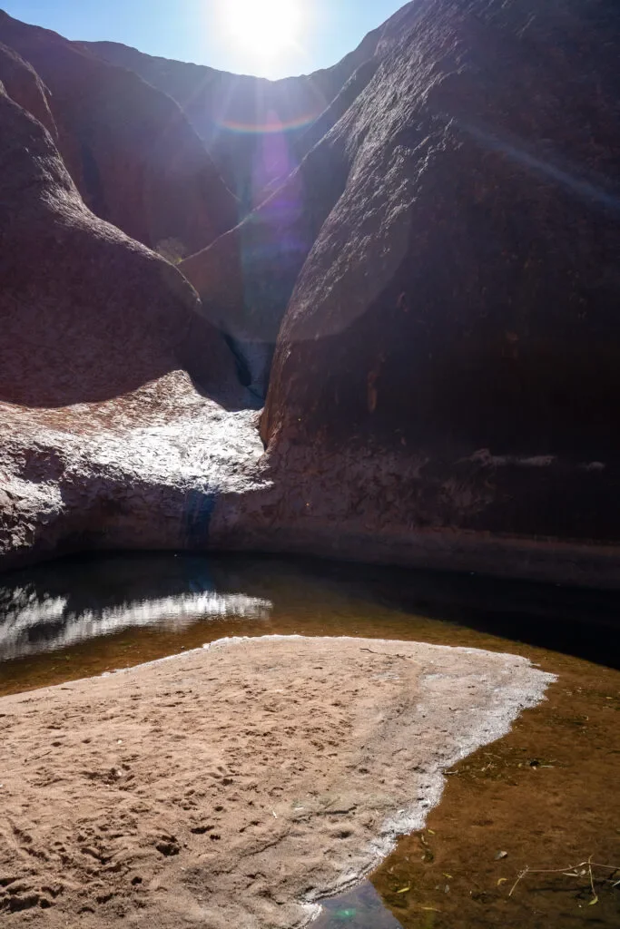 To wyjątkowe miejsce z najbardziej wydajnym źródłem wody w Uluru. Aborygeni wierzyli, że jaskinię zamieszkuje Wanambi (water snake), który kontroluje dopływ wody. Ludzie Anangu aby uzyskać wodę śpiewali „kuka kuka” i woda magicznie spływała ze skały do jaskini. Biorąc pod uwagę jak ważne jest posiadanie wody na pustyni, Mutitjulu Gorge zajmowało bardzo wysokie miejsce w hierarchii ważności świętych miejsc dla Aborygenów. W zależności od sezonu, zbiornik może napełnić się znaczną ilością wody, natomiast z oczywistych względów w tym miejscu obowiązuje zakaz kąpieli.
