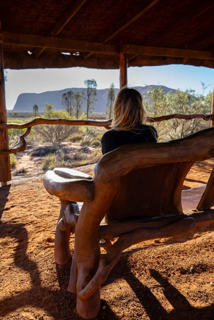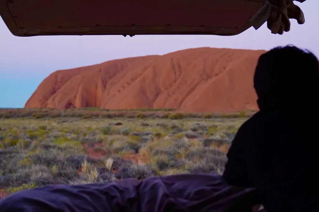 Wschód najlepiej zobaczyć ze specjalnie przygotowanej platformy Talinguru Nyakunytjaku. Do dyspozycji odwiedzających są dwa tarasy widokowe na różnych wysokościach. Jeśli będziecie odwiedzali Uluru zimą (byłam w sierpniu) to ubierzcie się ciepło, bo rano jest strasznie, strasznie zimno! Przynajmniej jak na australijskie standardy.